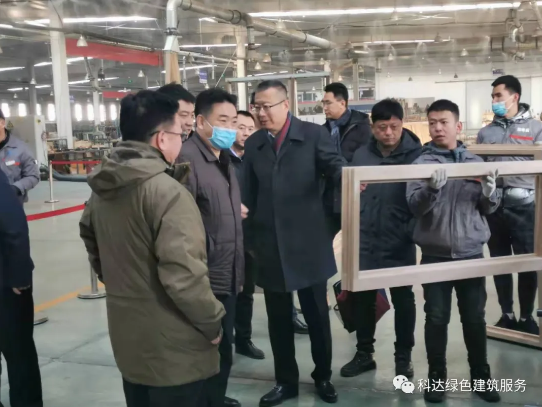 考察中,內蒙古科達建設集團董事長翟連科先生就科達集團的企業發展、被動式綠色門窗生產模式及企業科技創新成果等進行了系列介紹。考察團一行領導對科達集團的企業發展及被動式綠色門窗經營發展成果予以肯定,并鼓勵科達集團繼續科技創新的步伐,加快發展被動式建筑配套產品推廣和應用。