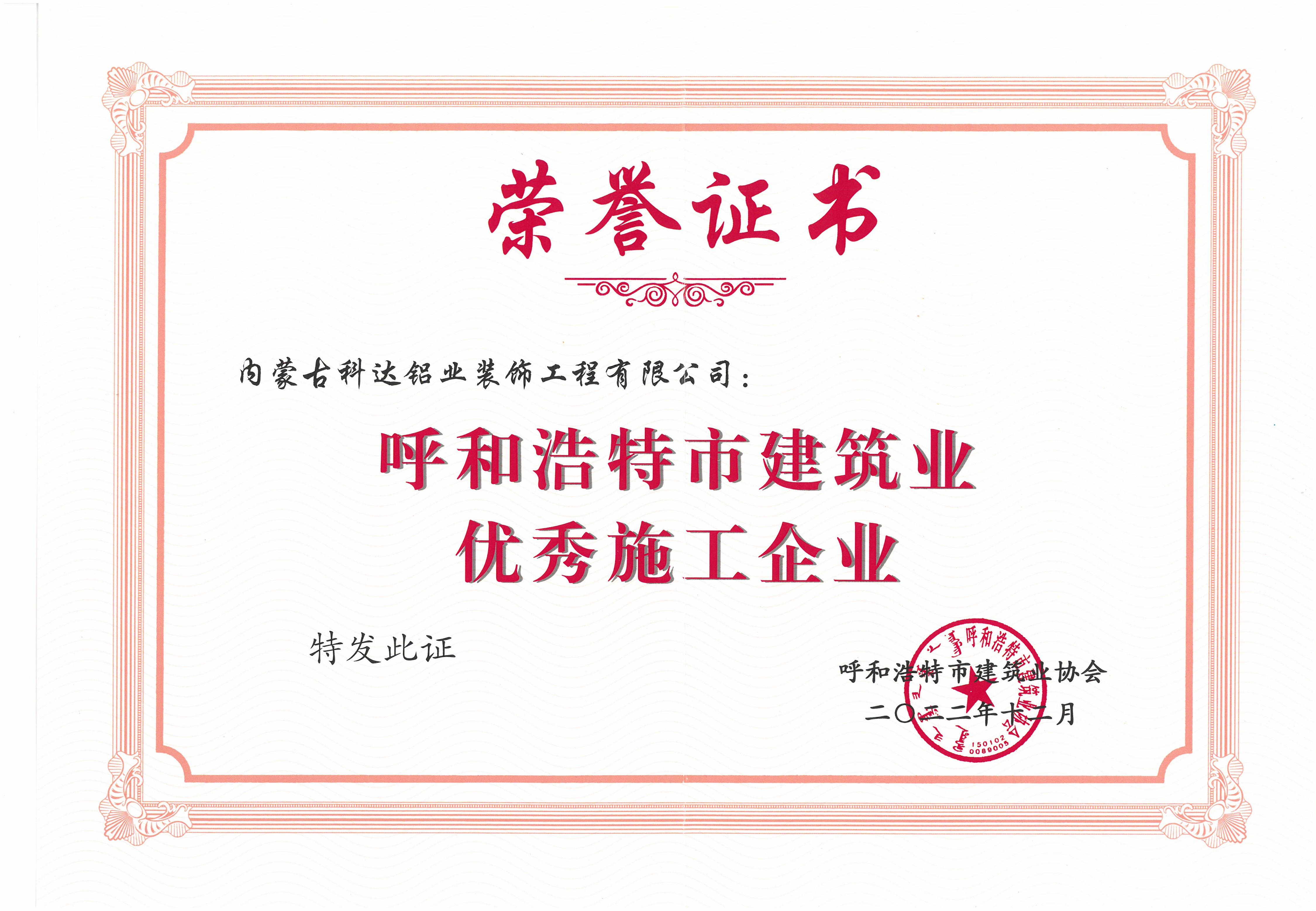 我公司被評為呼和浩特市建筑業優秀施工企業